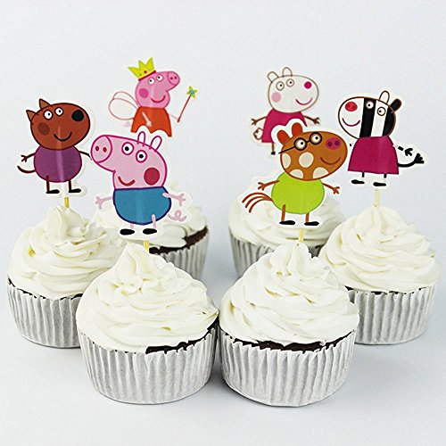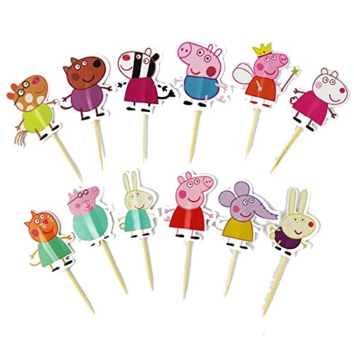 24pk Peppa Pig Kids Party Decoration Paper Cupcake Toppers (BrightandBold)