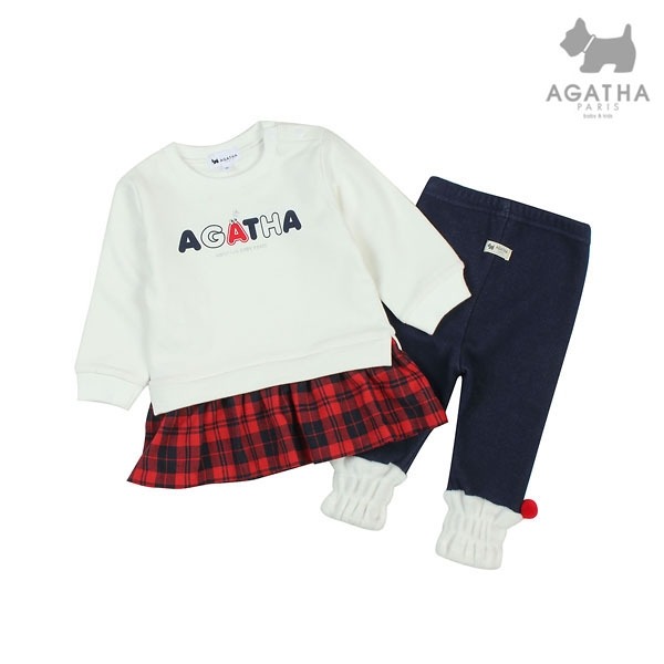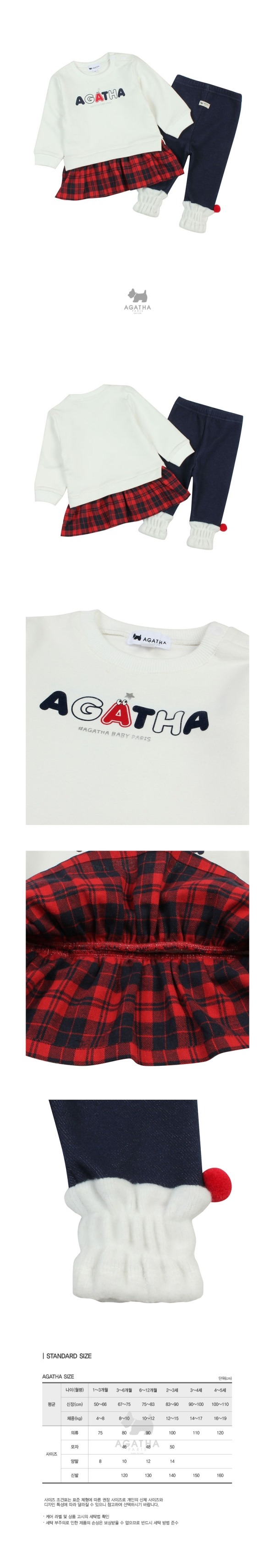 스판성 좋은 기모 져지 소재에 체크원단이 믹스된 티셔츠와 퍼원단이 믹스된 레깅스가 세트로 구성된 상하복.