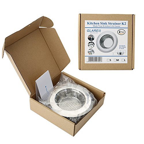 Sink Strainer 2 Pack, GLAREE Stainless Steel Kitchen Filter Mesh Basket Drain Catcher for Garbage Disposals Large Wide Rim 4.5" Diameter