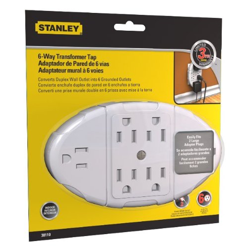 Stanley 38110 6-Way Transformer Tap with Grounded 6-Outlet Wall Adapter