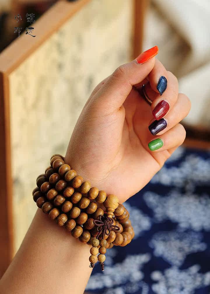 Green ebony texture closely hard, erosion immortality. Beautiful natural wood grain, feel smooth and delicate, fragrant aroma eternal, colorful and varied in the green sandalwood beads visible highly decorative natural lines, a circle like a distant ring exudes pure ancient flavor and dreamy blurred luster.