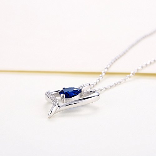 ♣Measurements - 1pc 7mm heart cut 3-prong created blue sapphire, 11pcs 1.0mm AAA cubic zirconia, 5pcs 0.8mm AAA cubic zirconia; pendant 19*25 mm, pendant weight: 4.5g; chain length: 18" (40cm plus 5cm extender)