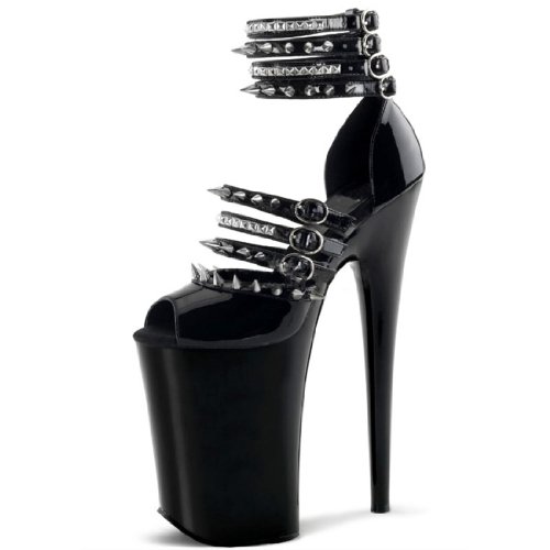 These black patent ankle cuff sandals are sexy and edgy in every way possible. From the spikes and studs to the extremely high 9 inch heels; they are fabulous!