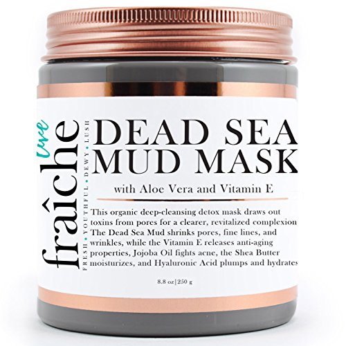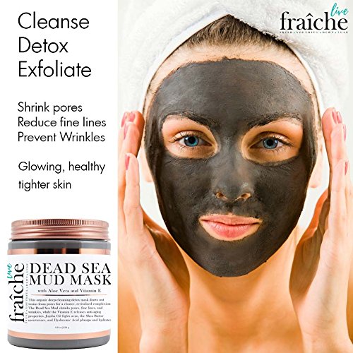 Live Fraiche Organic Dead Sea Mud Mask Facial & Body Cleanser- 8.8oz -Fight breakouts acne blackheads & Reduce Pores/Lines/Wrinkles - pure & natural to tighten & tone see clearer brighter younger skin