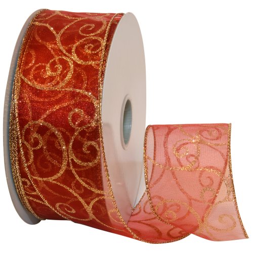 Morex Ribbon Swirl Wired Sheer Glitter Ribbon, 2-1/2-Inch by 50-Yard Spool, Red/Gold