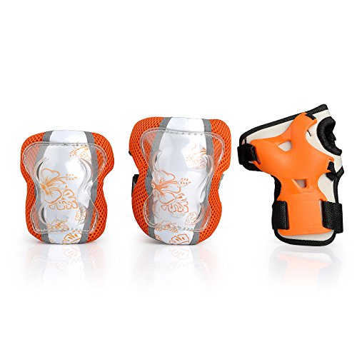-. Brand : KUKOME-SHOP -. Color : Orange white -. Department : Girls -. Feature : Durable plastic knee and elbow guards with 3mm thickness plates / Mesh material for breathability and comfortable / Adjustable elastic band fit your size well / Fit for : inline skating, riding bikes, scooters and other extreme sports / Size available: S M -. Label : K22563 -. Manufacturer : K22563 -. MPN : KUKOME-SHOP -. NumberOfItems : 6 -. PackageQuantity : 6 -. PartNumber : KUKOME-SHOP -. ProductGroup : Sports -. ProductTypeName : OUTDOOR_RECREATION_PRODUCT -. Publisher : K22563 -. Studio : K22563 -. Title : Children Protective Pads for Roller Skating Sports Safety Pad Safeguard Knee Elbow Wrist 6PCS Pad Set Equipment Orange