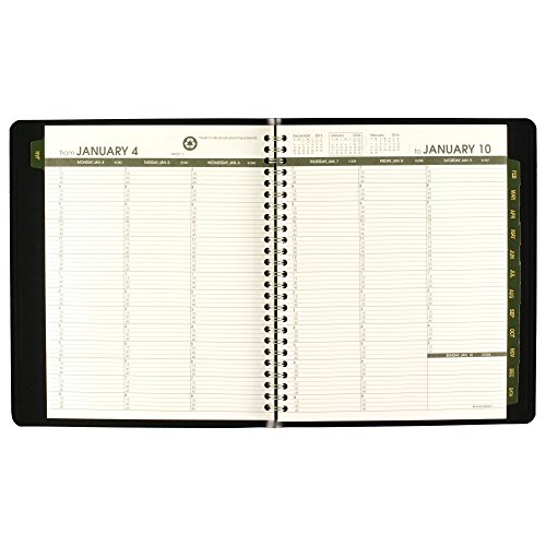 Recycled weekly / monthly appointment book / planner is made from post-consumer waste recycled material to help you protect the environment. 100% recycled paper, 50% recycled cover and 90% recycled wire.