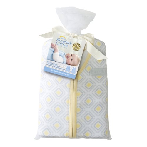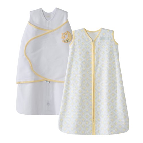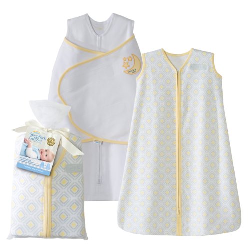-. Title : HALO SleepSack 100% Cotton Swaddle and Wearable Blanket Gift Set, White/Gray/Yellow Diamond, 2 Piece