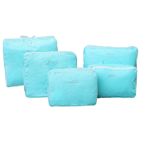 - Feature : 5 Travel Storage Bags,Half a hollow out grid design, the contents at a glance,material:Polyester Fiber / Color:Siver Pink Purple Sky-blue Rose / Two bags have handles,slight waterproof function,bright color,soft / one set have five bags, Five different sizes of storage bag,can be classified to store, sorting clothing, toiletries, cosmetics, bathing suit, and so on.Also can be used to storage the dirty clothes,quilts,sheets,etc. / Size: Bag 1:37*30*14cm(with handle) Bag 2:29*19*11cm(with handle) Bag 3:37*27*7cm Bag 4:31*27*7cm Bag 5:26*20*7cm