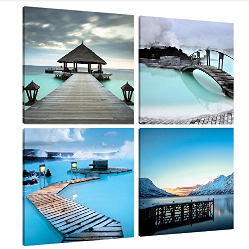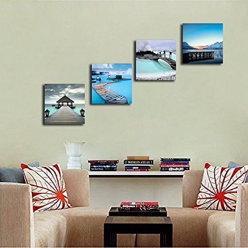 Stretched and framed canvas print. Each panel has a black hook already mounted on the wooden bar for easy hanging out of box.