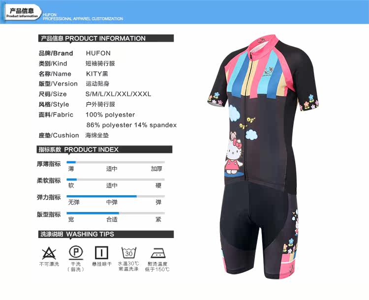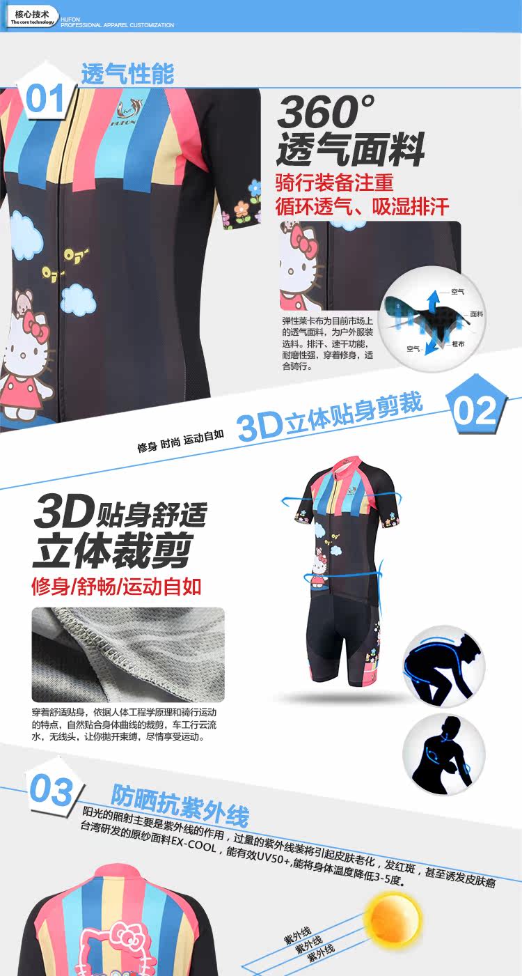 HelloKitty春夏HF短袖骑行服套装女款自行车衣动感单车骑行服女 ?