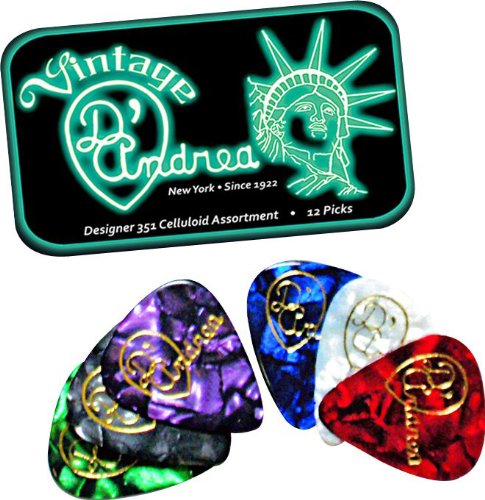 D'Andrea TNVDM Guitar Picks, 12-Piece, Collectible Tin, Designer Pearls Assortment, Medium