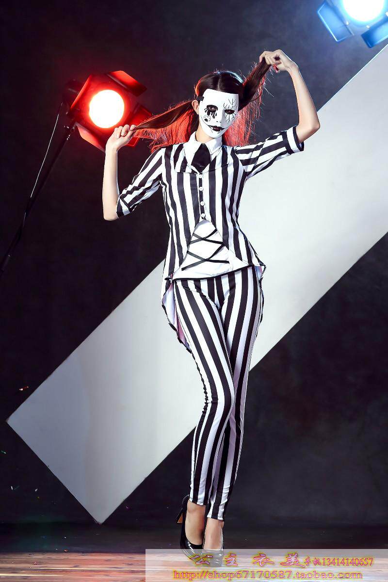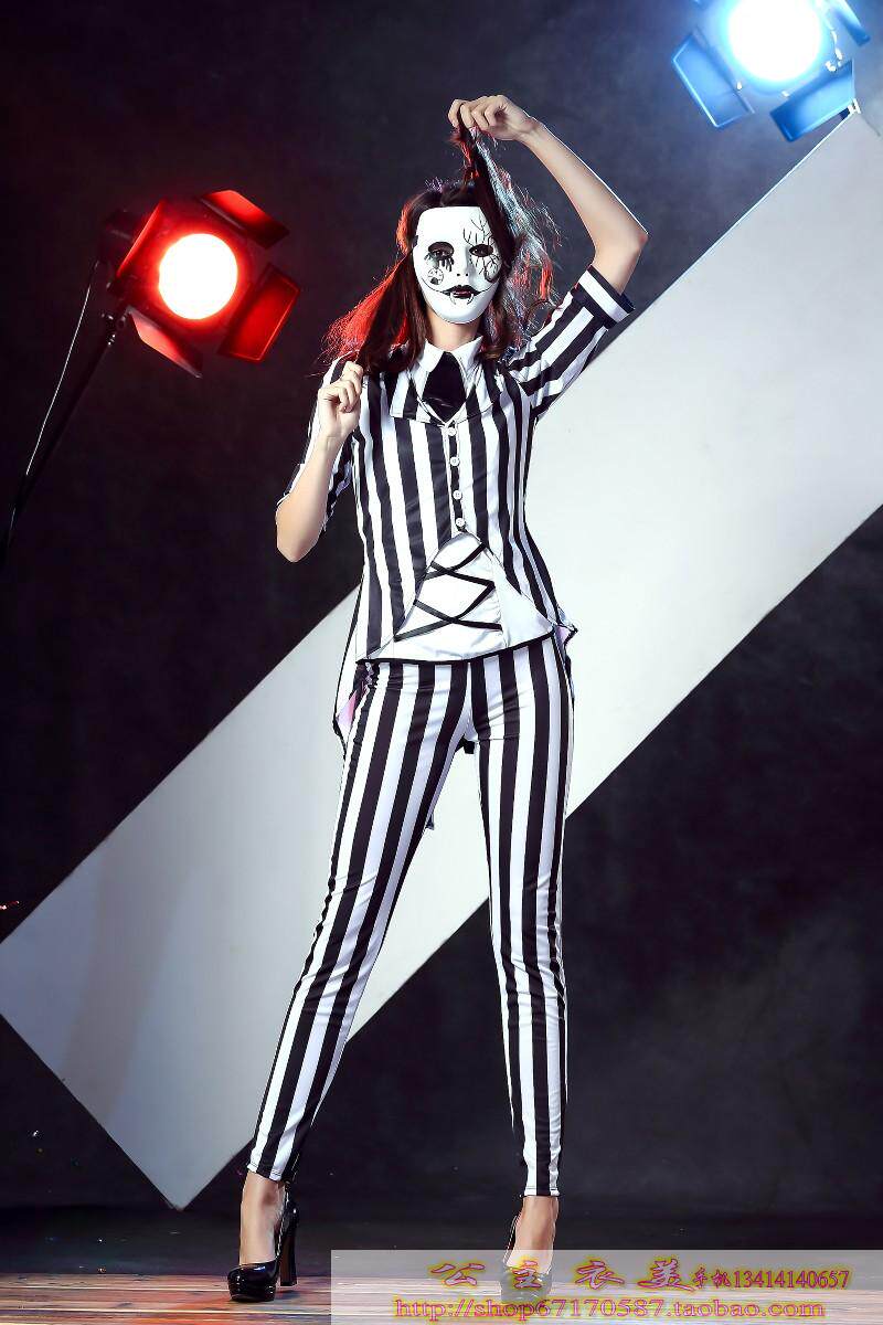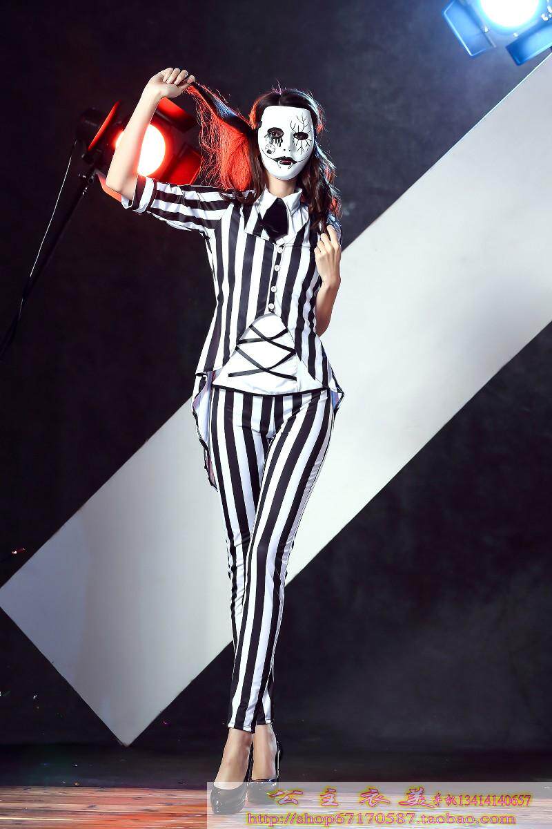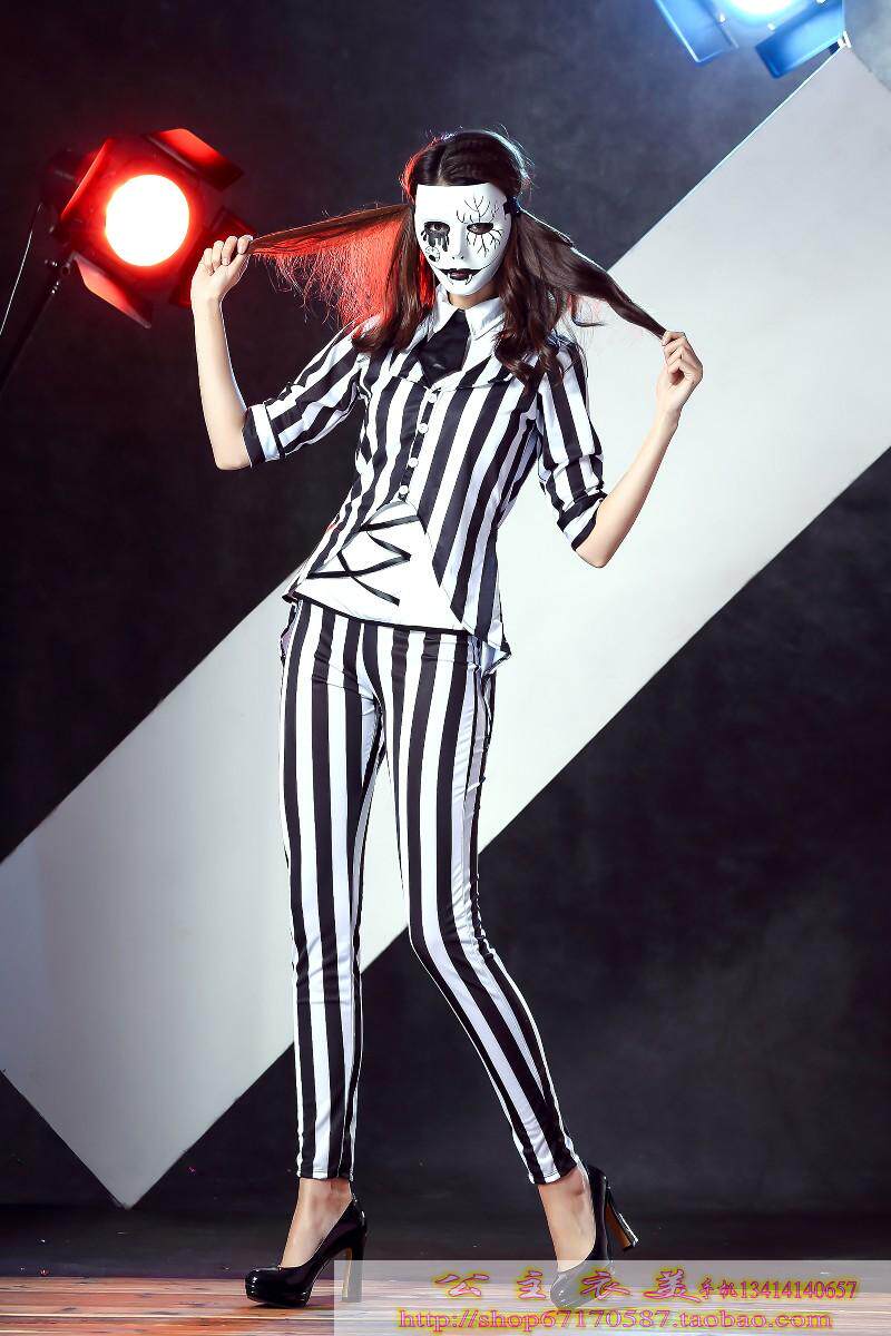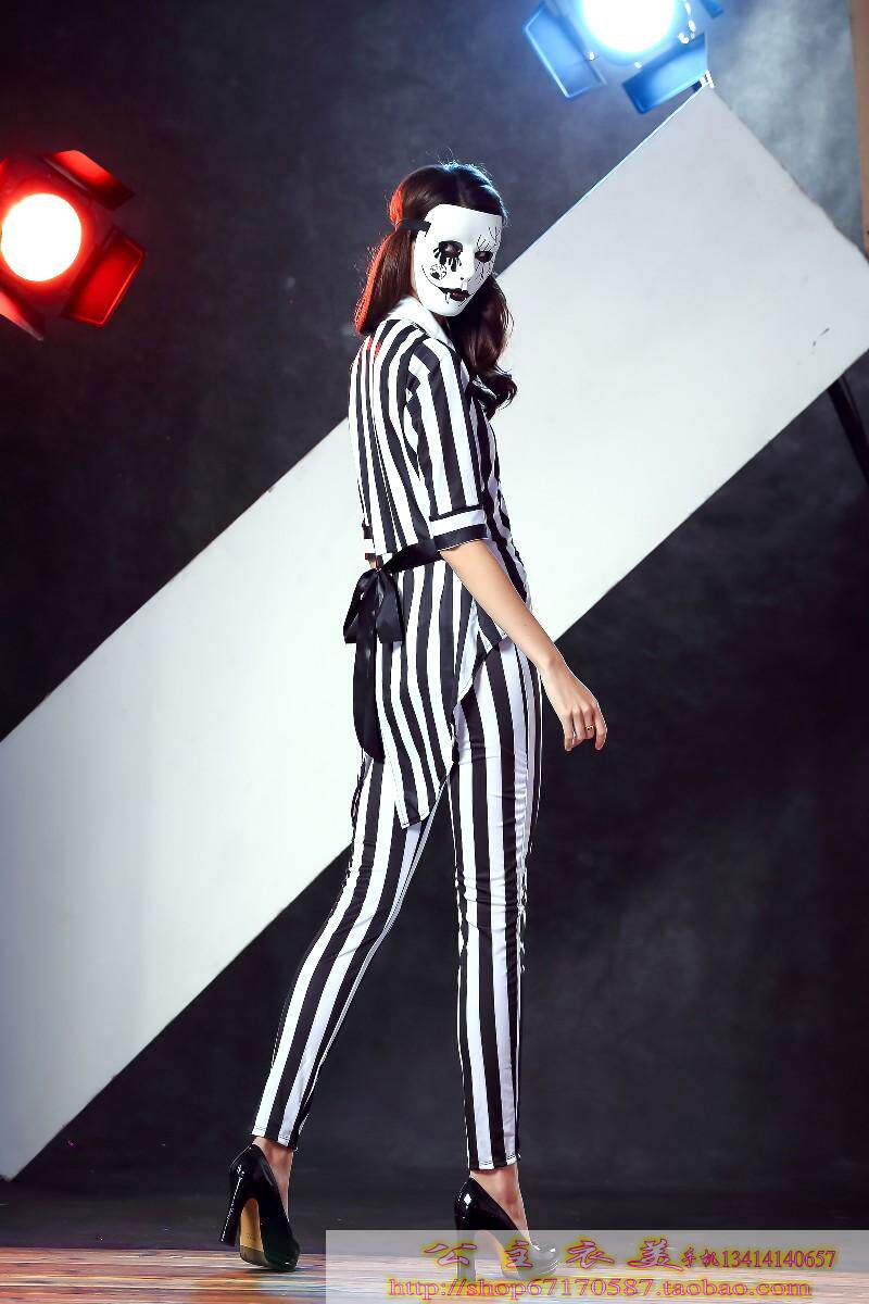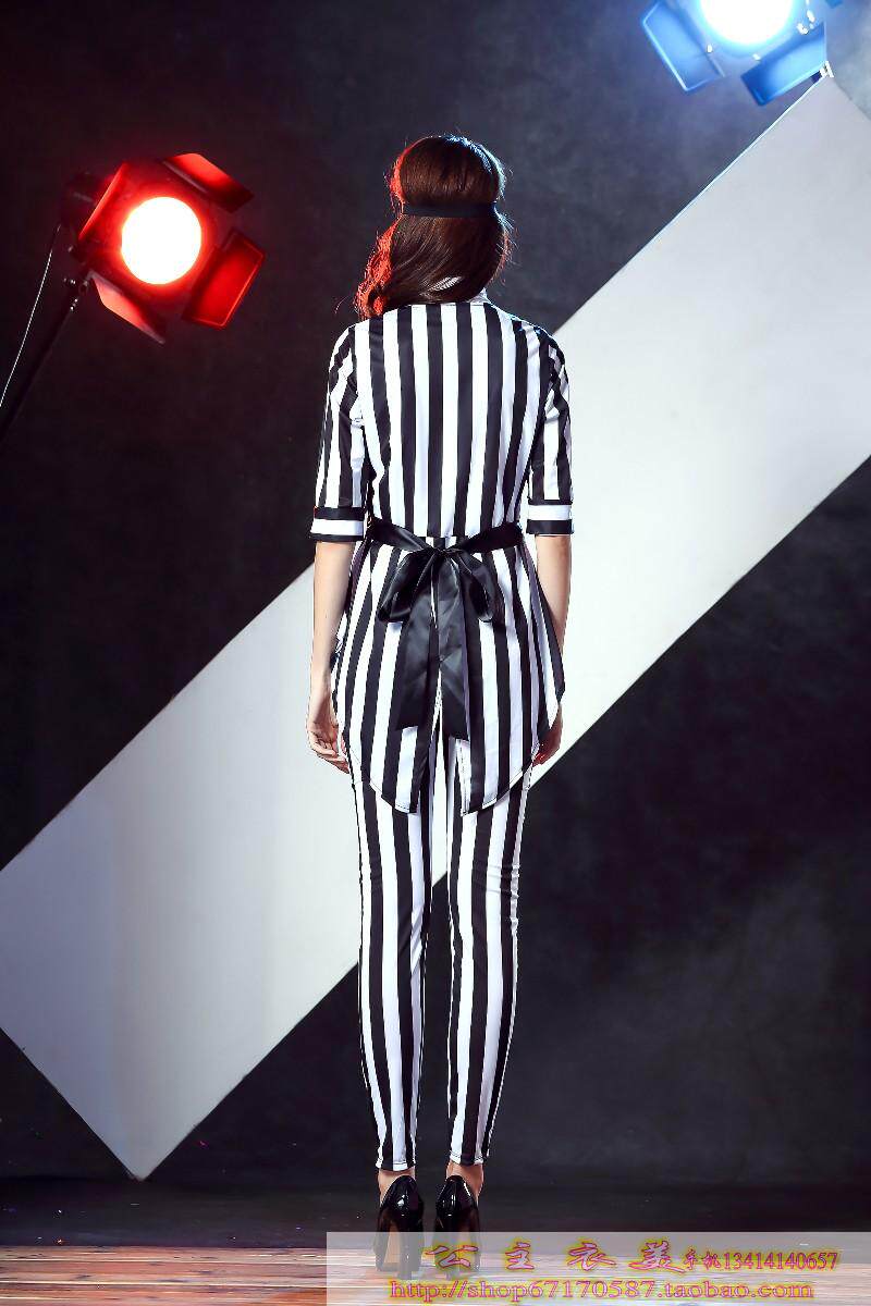 款式三 :配领带;条纹外套;白色内衣;长裤