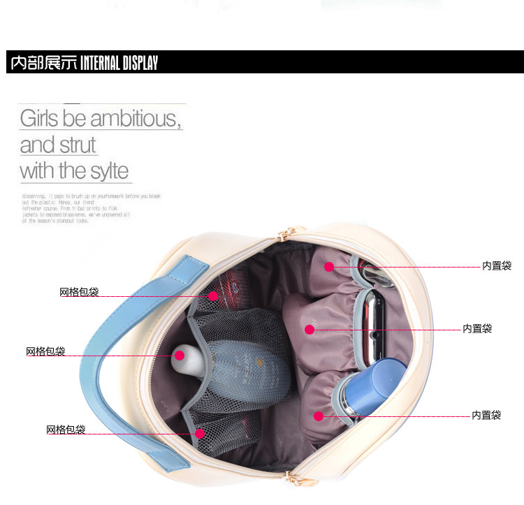 时尚手拎化妆包洗漱包。内部3个置物袋,3个网格袋