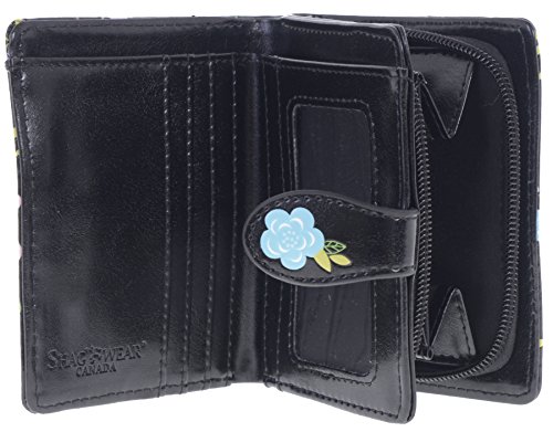 -. Binding : Apparel -. Brand : Shagwear -. Department : womens -. Feature : The exterior closure features a magnetic snap button, ensuring your wallet stays closed and secure / Fully lined bill compartment and zippered coin pouch with divider / Measures 4.5" x 3.75" x 0.75" when closed / Features 5 card slots and 1 ID card window / Click "Shagwear" to view our entire collection of wallets and accessories! -. ProductGroup : Apparel -. ProductTypeName : ACCESSORY -. Title : Shagwear Women's Small Wallets With Zipper Pocket Birds and Nature