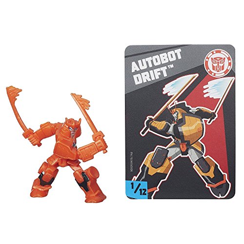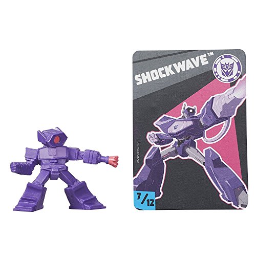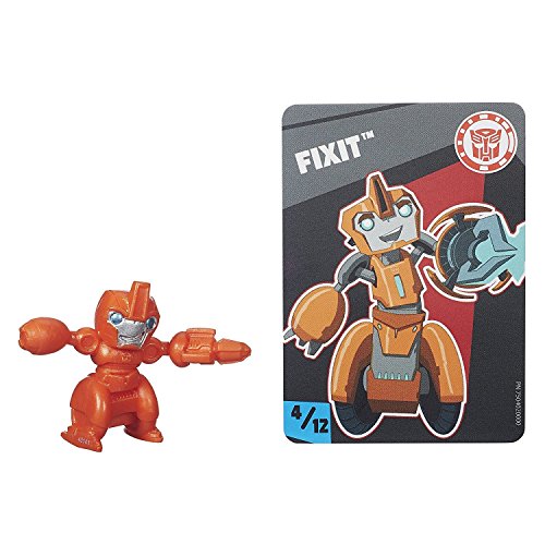 Get a bot that's small but mighty in this Tiny Titans figure pack! Each pack includes 1 miniature Transformers figure and a character card for your collection. Which one will you get? There's only one way to find out! Start building your Tiny Titans Transformers army today! Each character card has a scannable shield logo that unlocks energon cube currency and a power-up item in the Robots in Disguise mobile app game. Series 03 Possible Figures: Autobot Drift (RID) Repugnus (G1) Wreck-Gar (G1) Fixit (RID) Filch (RID) Decepticon Fracture (RID) Shockwave (G1) Beast Wars Megatron Wheeljack (G1) Optimus Prime (G1) Springload (RID) Autobot Twinferno (G1) Ages 4 and up