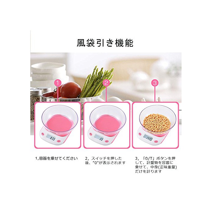 원본상품명: Bodyguard はかり デジタル クッキング スケ?ル 電子秤 0.1gから3kgまで 風袋機能 オ?トオフ機能 多用途計量器 ピンク