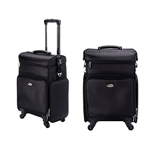 -. Binding : Misc. -. Brand : SunRise -. Color : Black -. EAN : 0714119826481 -. Feature : High quality nylon finished carry-on makeup case for traveling ; / It provide a portable retractable/telescoping handle and 360 degree 4-wheels rolling system ; / It has a inside removable case with extendable trays and side-pockets for bottles, brushes and any other makeup accessory ; / Opening the front pocket, It gives you large space to storage your cosmetics/travel supplies ; / Overall case dimensions: 14" L x 10" W x 22.23" H -. IsAdultProduct : 0 -. Label : SUN HOPE -. Manufacturer : SUN HOPE -. MPN : BH-0079T-B -. PackageQuantity : 1 -. PartNumber : BH-0079T-B -. ProductGroup : Beauty -. ProductTypeName : BEAUTY -. Publisher : SUN HOPE -. Studio : SUN HOPE -. Title : Sunrise Professional Rolling Soft Sided Makeup Train Case with Extendable Trays, Black -. UPC : 714119826481
