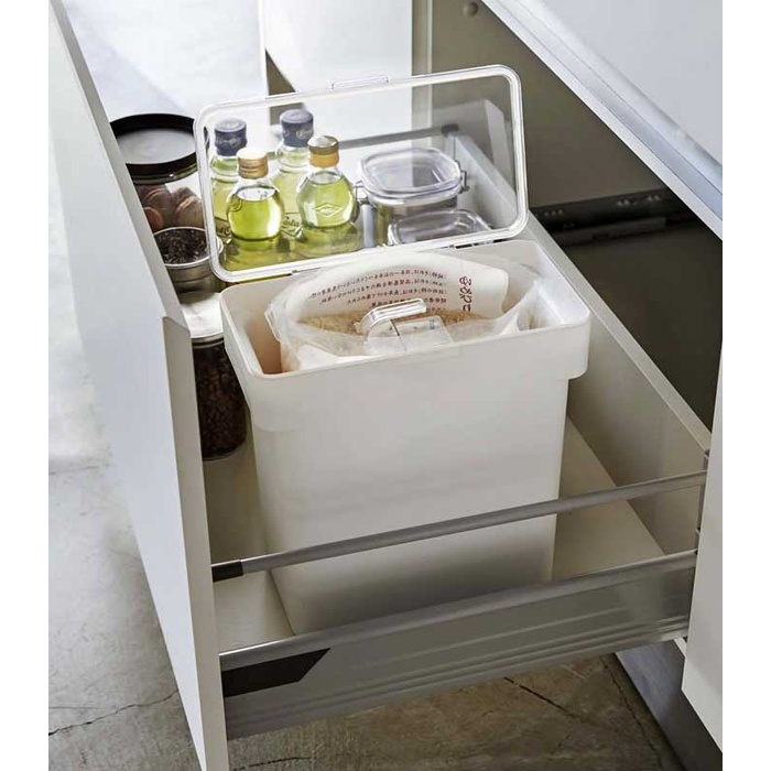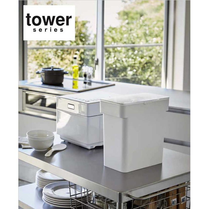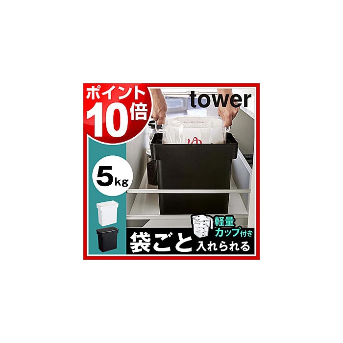 원본상품명: 【ポイント10倍 送料無料】米びつ タワ おしゃれ スリム 米櫃 5kg 5キロ 袋ごと そのまま 袋 ライスボックス ライスストッカ 保存容器 計量カップ キッチン納 白 yamazaki 山崎業 [ tower 密閉 袋ごと米びつ 5kg 計量カップ付 ]