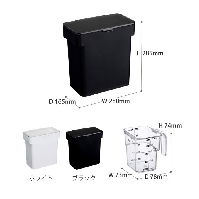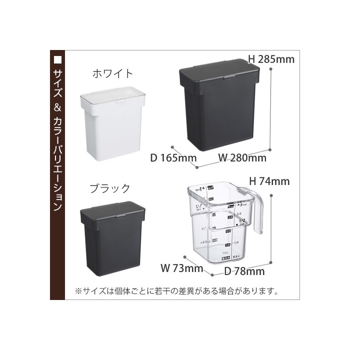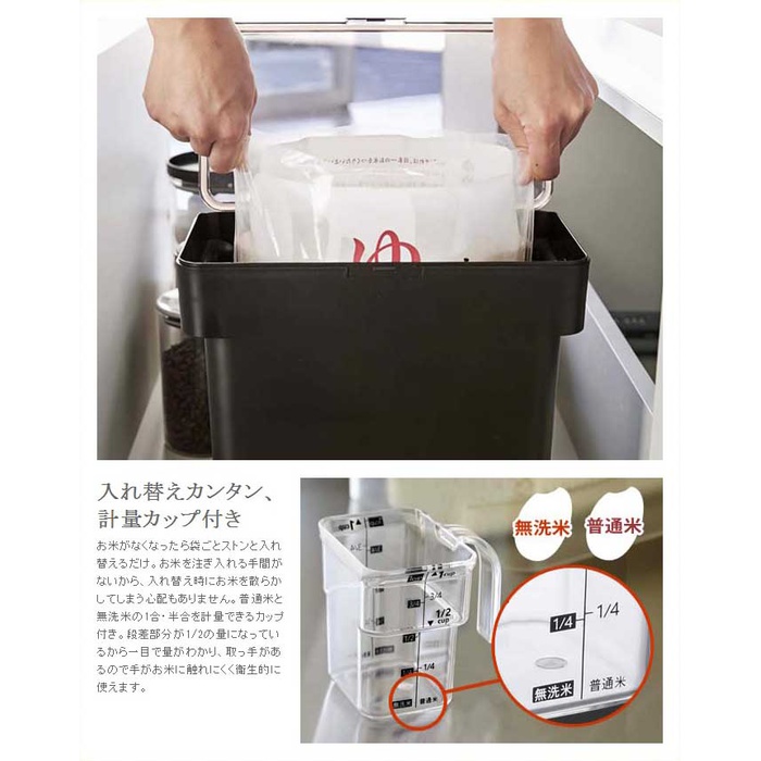 Roomy 【포인트10배 무료 우송】쌀통 타워 멋쟁이 슬림 쌀궤 5kg 5킬로 대마다 그대로 대 라이스 박스 라이스 스토커 보존 용기 계량 컵 키친 수납 흑백 yamazaki 야마자키 실업