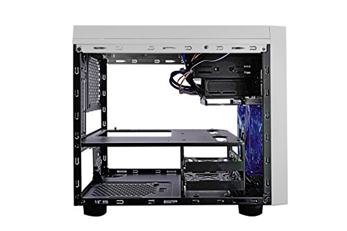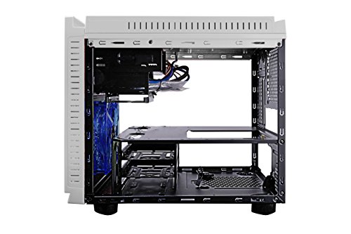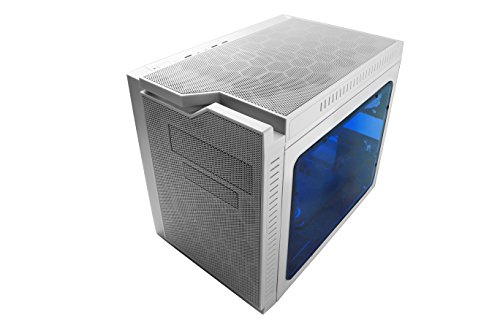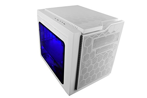 APEVIA X-QPACK3-WHT Micro ATX Cube Gaming/HTPC Case, Supports Video Card up to 320mm/ATX PS, 2 x Blue Windows, USB3.0/USB2.0/HD Audio Ports, 1 x 140mm Blue LED fan, Flip Open Design, Dust Filter–White