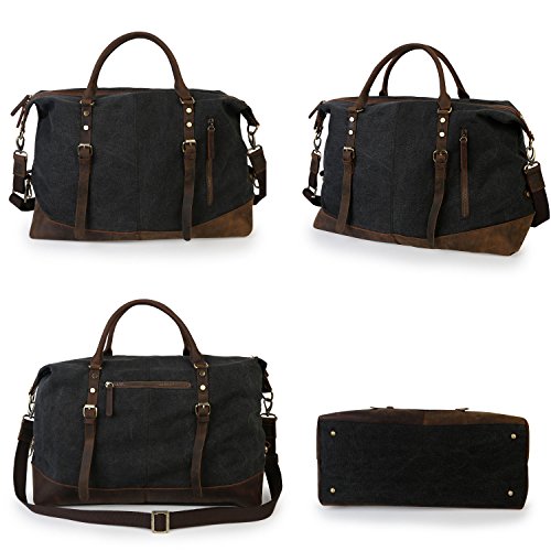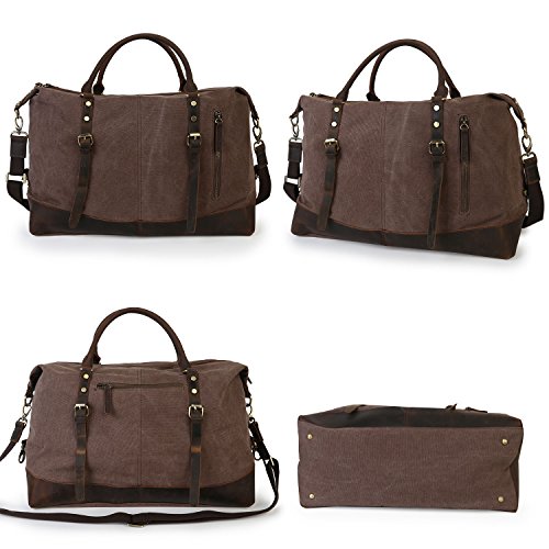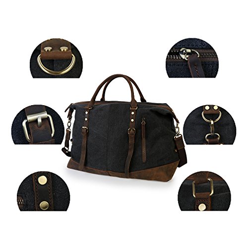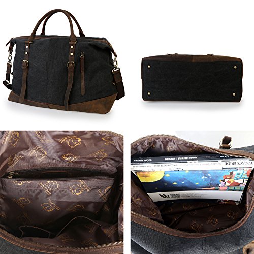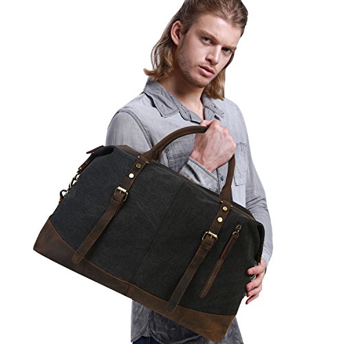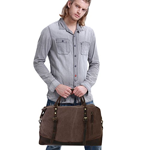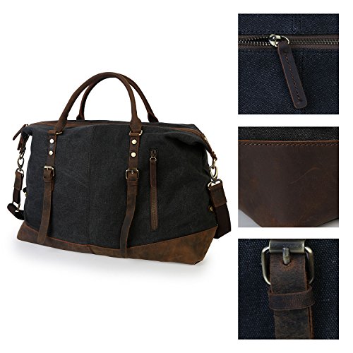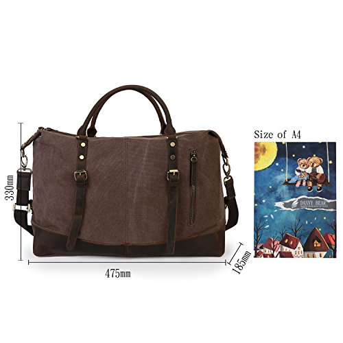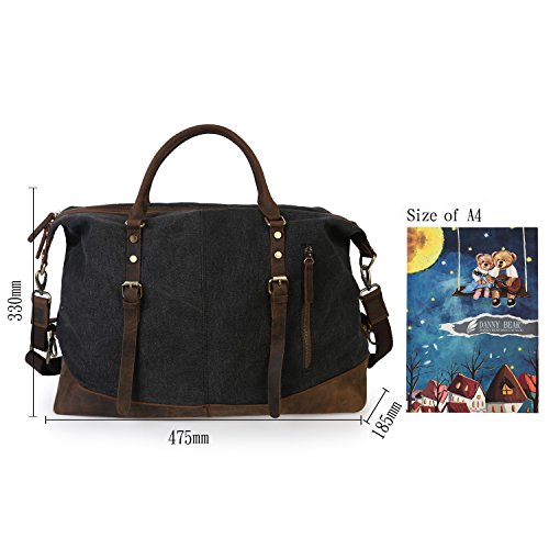 -. Feature : ▶ Bottom Rivets,soft canvas fabric,high quality genuine crazy horse leather are around the bottom of side / ▶ Texture zinc hardware, more anti-oxidation, not easy to get rust / ▶ Dimensions: 18.7''x 7.28'' x 12.99'' (L x W x H) /47.5cm x 18.5cm x 33cm, roomy space for clothes and traveling necessities / ▶ Large travel duffel bag great for men take in weekend travel or overnight short Trip, short business travel, hospital bag,etc. Unisex style perfect for men and women / ▶ Double zipper, rivets reinforcement, looks fashion and vintage