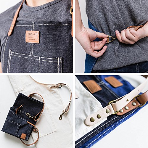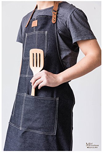 Denim Apron Kitchen Professional Apron Cotton Fashion Justable with Pockets ,Machine Washable, Comfortable, Easy Care