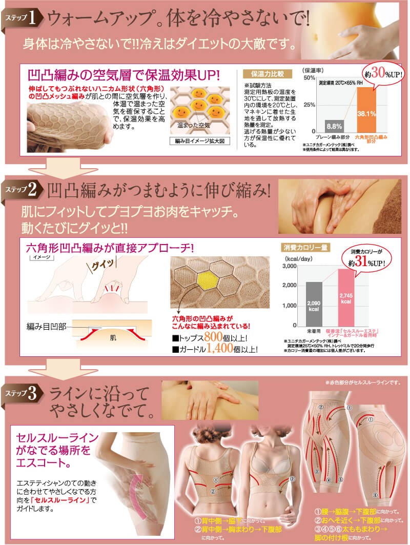 特許技術を活用した「揉みほぐし編み」インナーで、エステの技術を再現!