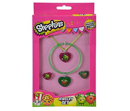 -. Feature : Walk in style with all the shopkins characters you love. With these bright green and red colors. / This is great for children who love to dress up with shopkins style when your out and about. / Included in the set of 4 you will receive 1 pendant, 1 necklace, and 2 rings with each purchase. / This is made out of the best colorful high grade non-toxic plastic for children to wear all day long. / Perfect for a special celebration, birthdays, christmas, hanukkah or any occasion for children.
