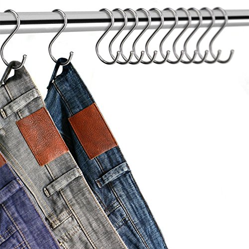 Daixers 100% High Quality Stainless Steel Hanging Hooks All-powerful Scarf Apparel Punch Cup Bowl Kitchen S Shaped for Bathroom,bedroom,office Set of 10 (L)