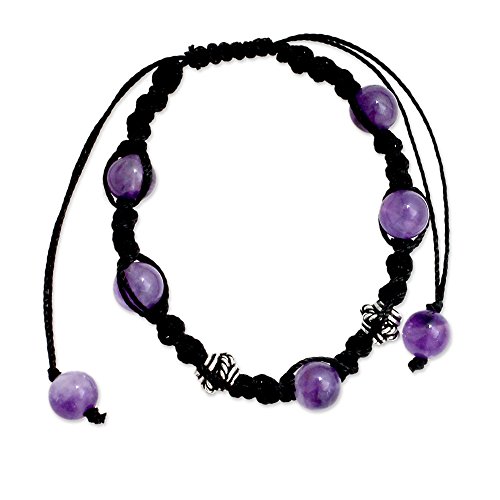 -. Binding : Jewelry -. Brand : NOVICA -. Department : womens -. Feature : An original NOVICA fair trade product in association with National Geographic. / Includes an official NOVICA Story Card certifying quality & authenticity. / NOVICA works with Ritu to craft this item. / Includes an original NOVICA jewelry pouch to keep for yourself or give as a gift. / A keepsake treasure designed to be loved for years to come. -. Label : NOVICA -. Manufacturer : NOVICA -. MPN : 192841 -. PackageQuantity : 1 -. PartNumber : 192841 -. ProductGroup : Jewelry -. ProductTypeName : FINENECKLACEBRACELETANKLET -. Publisher : NOVICA -. Studio : NOVICA -. Title : NOVICA Handmade Amethyst Shambhala Style Macrame Bracelet with Sterling Silver Accent 'Violet Peace'