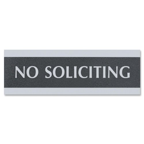 Headline Sign Century Series "No Soliciting" Sign, 3X9, Black/Silver (4758)