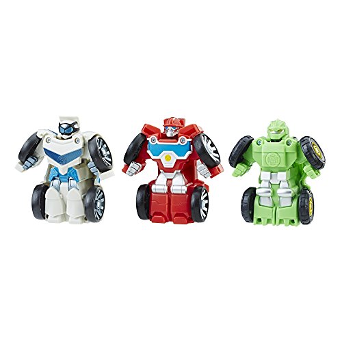 Fast and fearless, the Rescue Bots Flip Racers Griffin Rock Stunt Team races and jumps over any obstacle to save the day! Sized right for little hands, 3 awesome Flip Racers figures--Boulder the Construction-Bot, Heatwave the Fire-Bot, and Quickshadow--convert from vehicle mode to bot mode in 1 easy step! Flip up each figure to convert it to bot mode. Flip them back down to convert the Boulder the Construction-Bot figure into a monster truck vehicle and Quickshadow and Heatwave the Fire-Bot figures into race car vehicles. Smooth-rolling wheels help little heroes pretend to race them to the scene of a rescue in a hurry! Look for other Playskool Heroes Transformers Rescue Bots Flip Racers figures to build a rescue team. (Other figures each sold separately. Subject to availability.) Manufactured under license from TOMY Company, Ltd. Transformers Rescue Bots is a trademark and copyright of Hasbro.