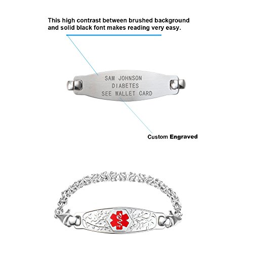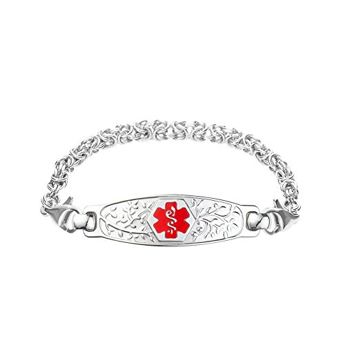 -. Binding : Jewelry -. Brand : Divoti -. Department : womens -. Feature : Easily provide your custom engraved content by selecting the CUSTOMIZE NOW button to the right. / Custom engraved in high contrast black laser engraving to personalize your medical message (on back : 3 lines of 18 characters, spaces included) / Hypoallergenic 316L medical alert bracelet and comes with size options 6.0-8.5 inches. / Deep embossed caduceus symbol with hard enamel filled on the front of medical alert bracelet. Excellent wear resistance. / Includes free customizable medical alert wallet card, medical alert smartphone apps and Velvet gift bag. -. Label : Divoti Inc. -. Manufacturer : Divoti Inc. -. Model : 5102RE -. MPN : 5102RE -. PartNumber : 5102RE -. ProductGroup : Jewelry -. ProductTypeName : FASHIONNECKLACEBRACELETANKLET -. Publisher : Divoti Inc. -. Studio : Divoti Inc. -. Title : Divoti Custom Engraved Beautiful Olive Medical Alert Bracelet -Handmade Byzantine-Red