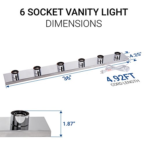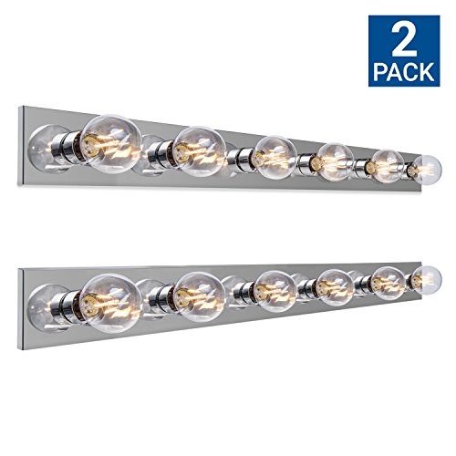Hyperikon Vanity Light Bar Strip Fixture, 36 Inch with 6 Sockets (E26 Medium Base), Polished Chrome Finish, Plug and Switch Rotary Cord - Bulbs Not Included (2 Pack)