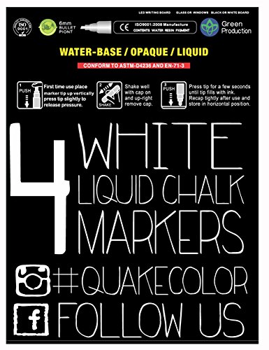Reversible 6mm tips offers additional creativity in your designs. Wedding announcements, graduations, birthdays, anniversaries, promotions on your storefront windows are just a few ideas for Color Quake Chalk Ink Markers. Lets your creativity go wild.