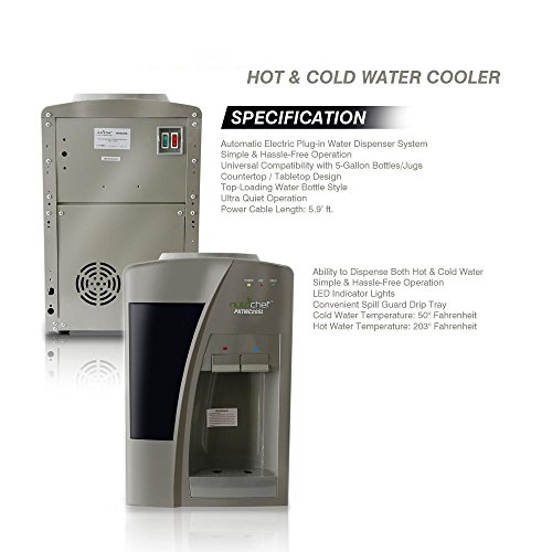 Nutrichef Countertop Water Cooler Dispenser - Hot & Cold Water, Holds 3 or 5 Gallon Bottles - PKTW20SL