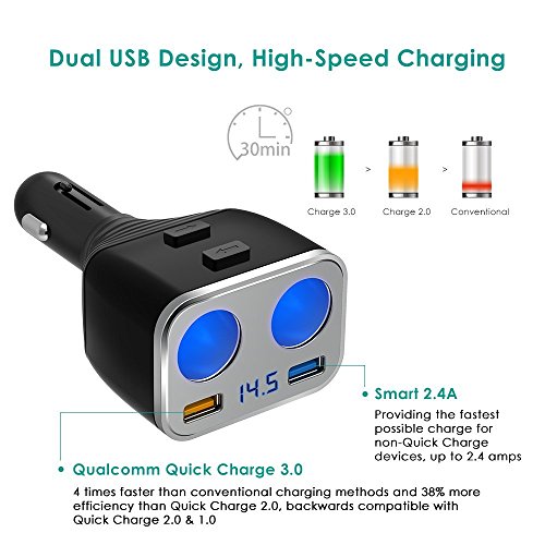 - 【Low Voltage Alarm】- The LED display can monitor your car battery. When car voltage is less than 12V, it warns with flashing number on the display. Built-in protective circuits and high quality components prevent the product or your devices from overheating or overloading.