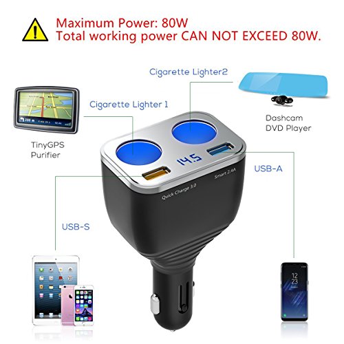- 【Practical Design】- Convert and increase your car cigarette lighter from 1 to 2 sockets, enough for simultaneous use of a variety of portable appliances like dash cam, GPS, handheld vacuum cleaner and other small appliances in your 12V/24V vehicle.