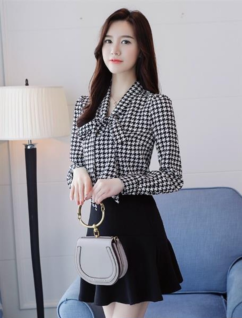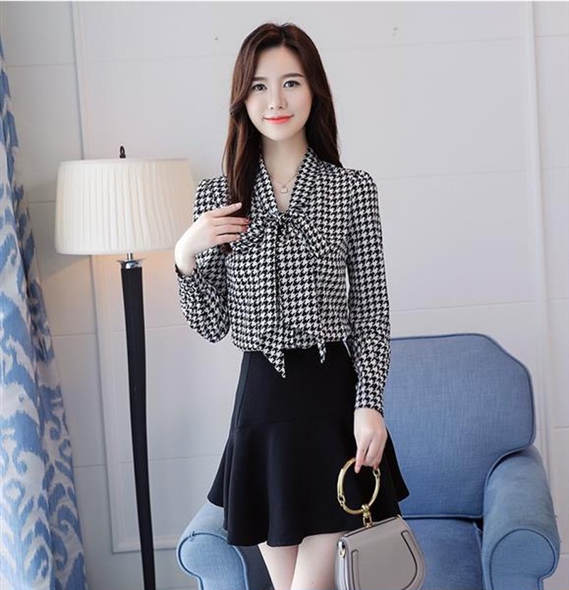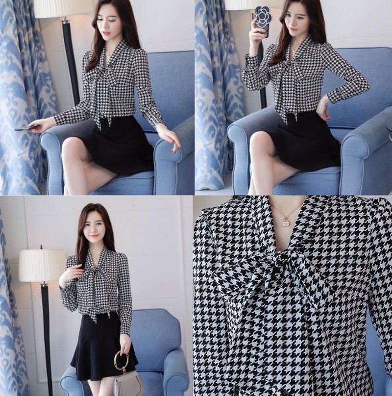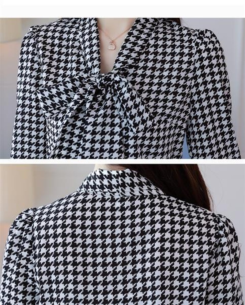 ♢ポイント♢ 胸元のリボンがおしゃれな格子柄シフォンブラウスです。 さらっとしたとろみシャツが大人の雰囲気を演出します♪