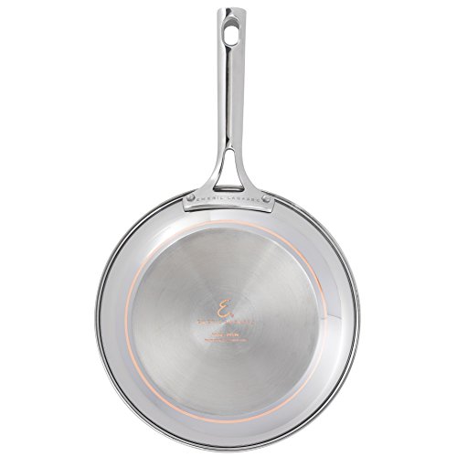 In my Emeril Lagasse stainless steel with copper core cookware you have the beauty of stainless steel with the added bonus of an aluminum base bottom surrounding a copper core. This means that the cooking surface heats up quickly and the heat is exceptionally well-distributed. These pots and pans are also ready to go from either conventional or induction stovetops straight to the oven and then for quick clean up, they are dishwasher-safe. Tempered glass lids make it easy to monitor cooking without lifting the lid and losing precious steam. Perhaps my favorite feature about this set, however, is the pour spouts and straining lids which work together to allow draining of cooking liquids without removing the lids. My 10 inch fry pan is perfect for searing steaks, making omelets, or sautéing vegetables.Feature