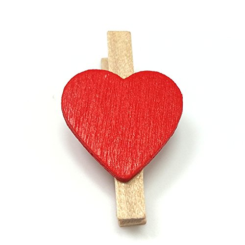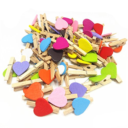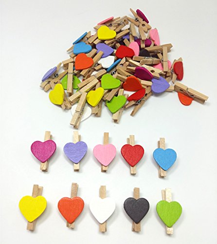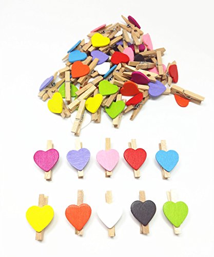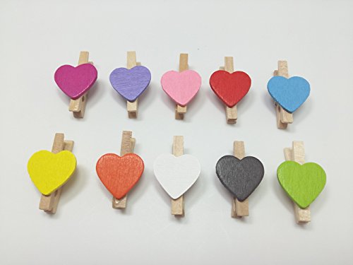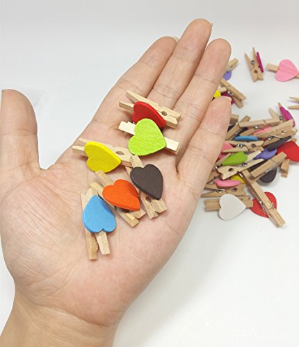 QTMY 50 Pcs Small Mixed Color Heart Wooden Clip Hanging Photos Decoration Supplies Favors