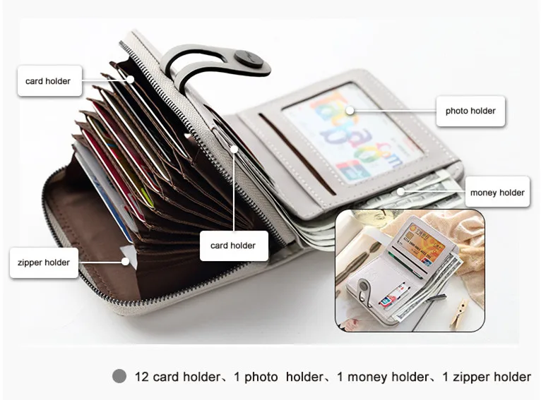 Interior:Zipper Poucht,Interior Compartment,Interior Slot Pocket,Coin Pocket,Interior Zipper Pocket,Card Holder,Photo Holder,Note Compartment