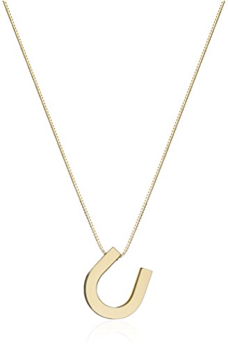 -. Title : 14k Yellow Gold Floating Horseshoe Pendant Necklace, 17"