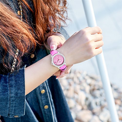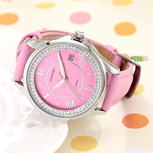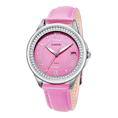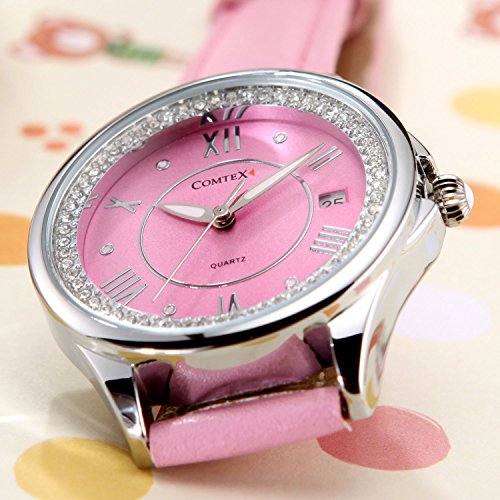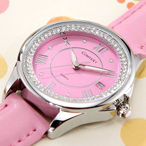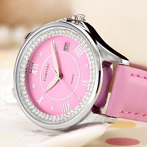 Comtex Women's Analog Fashion Wrist Watch with Comfortable Pink Leather Strap