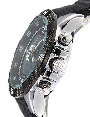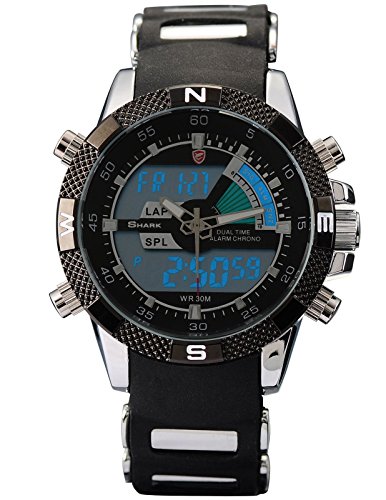 -. Title : SHARK Mens Alarm LCD Dual Time Chronograph Black Army Military Sport Wrist Watch SH042