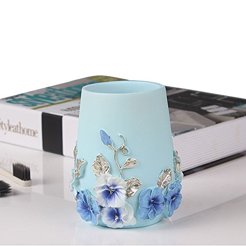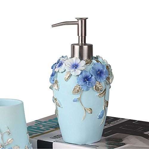 Bathroom Accessories Set, 5-Piece Bathroom Gift Set Features Soap Dispenser Pump, Toothbrush Holder, Tumbler & Soap Dish, Durable Bath Set Decorating Ideas (Blue)