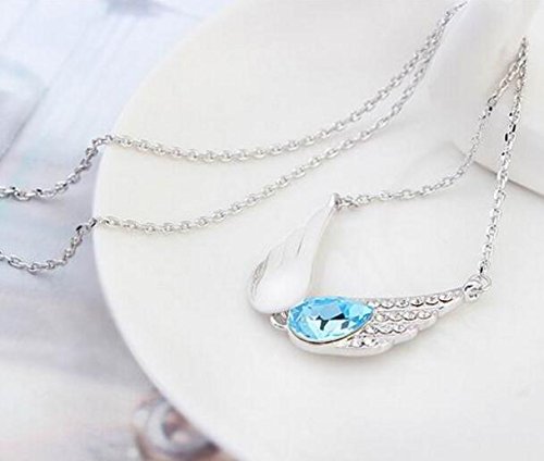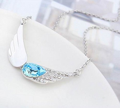-. Title : Sojewe Women Angel Wing Necklace Blue Swarovski Elements Crystal on Pendant White Gold Plated Fashion Accessories Gift for Wife Girlfriend