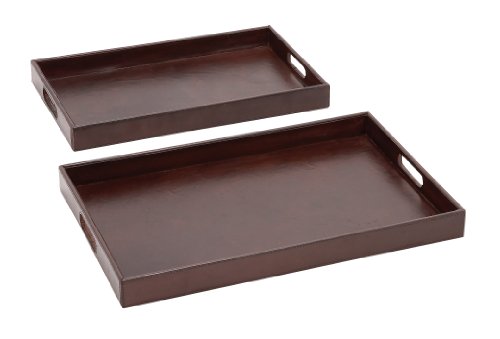 Plutus Brands The Suave Set of 2 Wood Real Leather Tray