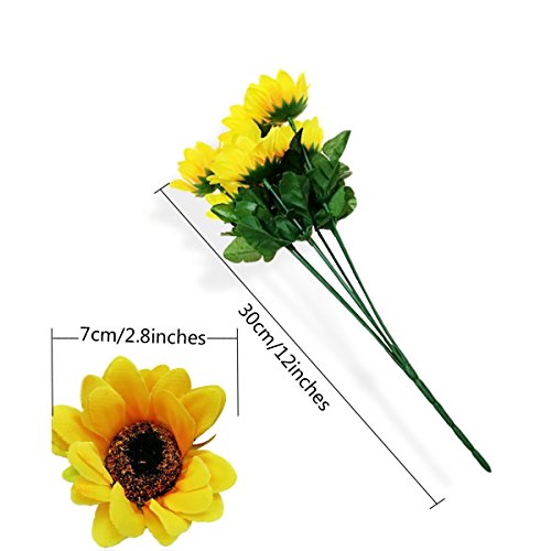 Artificial Sunflower,Govine Artificial Flowers fake flowers For Home Decoration Wedding Decor,7 Flowers Per Bunch, 4 Bunches Per Pack